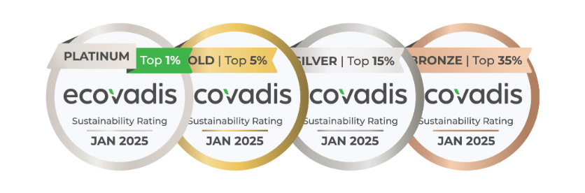 ● 铜牌(Bronze Medal): 授予在EcoVadis评估中总分位列前35% 的企业(且分数需达到62分及以上)。获得铜牌意味着企业的可持续发展表现已优于业内半数以上的参评者。
